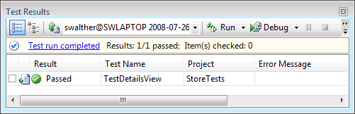 Sie können den Komponententest in Listing 2 ausführen, indem Sie entweder die Tastenkombination STRG-R, A eingeben oder auf die Schaltfläche Alle Tests in Lösung ausführen klicken (siehe Abbildung 1). Wenn der Test erfolgreich ist, wird das Fenster Testergebnisse in Abbildung 2 angezeigt.