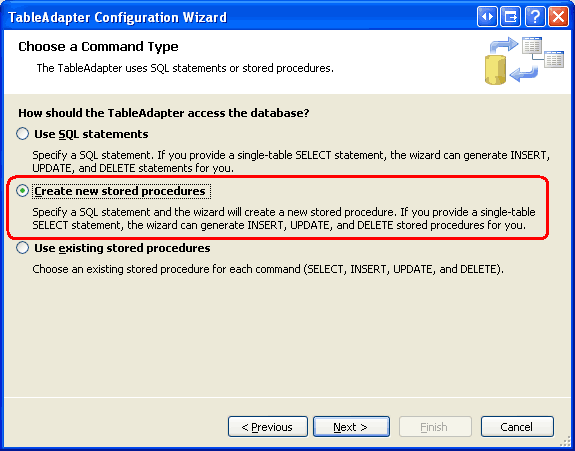 Abbildung 3: Weisen Sie den TableAdapter-Assistenten an, die gespeicherte Prozedur für uns zu erstellen (Klicken Sie hier, um das Bild in voller Größe anzuzeigen)