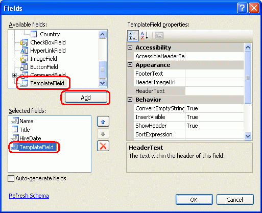 Abbildung 15: Hinzufügen eines neuen TemplateFields zur GridView (Klicken Sie hier, um das Bild in voller Größe anzuzeigen)