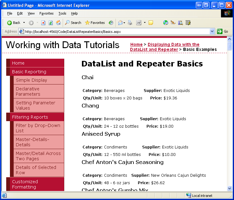 description="Samples of Reports that Use the DataList and Repeater Controls"