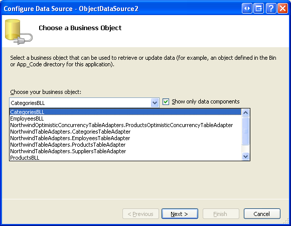 Abbildung 15: Konfigurieren der ObjectDataSource für die Verwendung der CategoriesBLL Klasse (Klicken, um das Bild in voller Größe anzuzeigen)