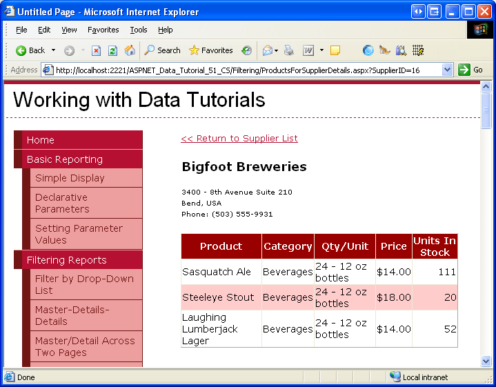 Abbildung 15: Die Produkte des ausgewählten Lieferanten werden angezeigt ProductsForSupplierDetails.aspx (Zum Anzeigen des Bilds mit voller Größe klicken)