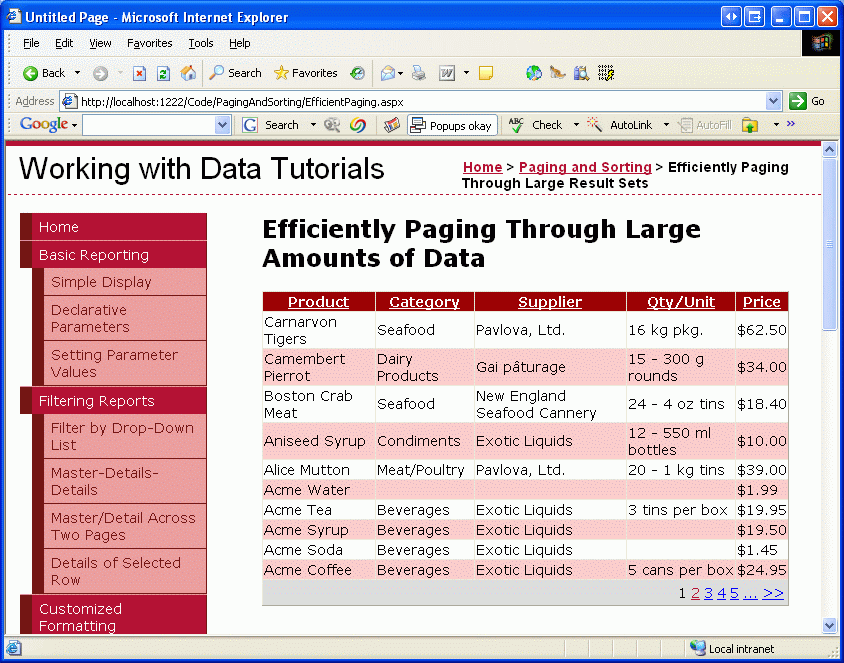 Der Code für beide dieser Ereignishandler finden Sie in der CodeBehind-Klasse des EfficientPaging.aspx Beispiels.