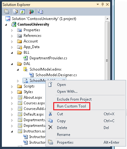 // 5. In Solution Explorer, right-click Model1.Views.tt and choose "Run Custom Tool" to generate the views
