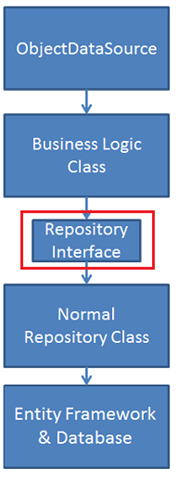 ObjectDataSourceSteuerelement mit der Geschäftslogikklasse und nicht mit der Repositoryklasse. - Erstellen Sie ein Komponententestprojekt und eine Repositoryklasse, die In-Memory-Sammlungen für den Datenspeicher verwendet.