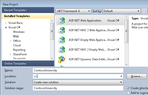 Diese Tutorialreihe verwendet das ASP.NET Web Forms-Modell und setzt voraus, dass Sie wissen, wie Sie mit ASP.NET Web Forms in Visual Studio arbeiten. Falls nicht, lesen Sie Erste Schritte mit ASP.NET 4.5 Web Forms. Wenn Sie lieber mit dem ASP.NET MVC-Framework arbeiten möchten, lesen Sie Erste Schritte mit dem Entity Framework mithilfe von ASP.NET MVC.