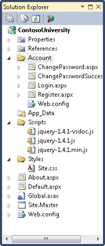 Öffnen Sie die Datei Site.Master, und ändern Sie "My ASP.NET Application" in "Contoso University".