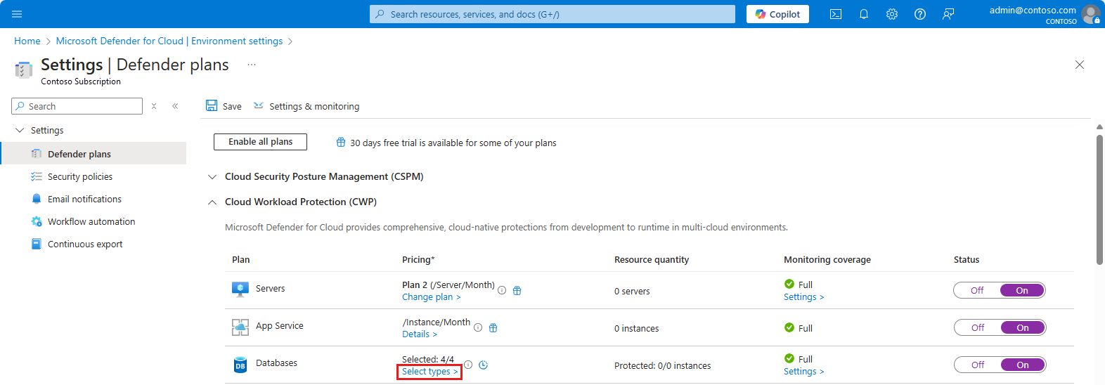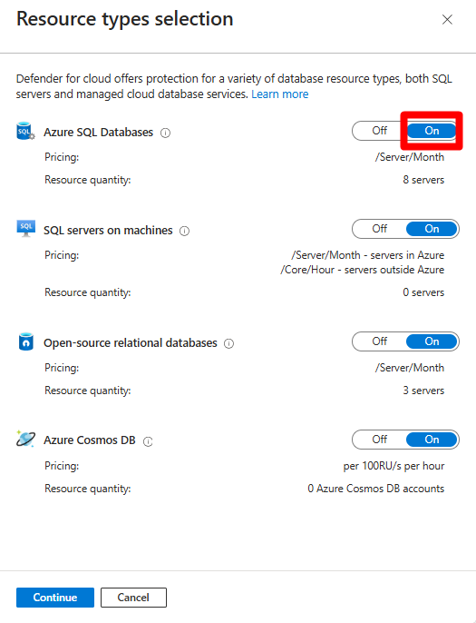 Sie müssen den Defender für Datenbanken-Plan in Ihrem Defender for Cloud-Abonnement aktivieren.