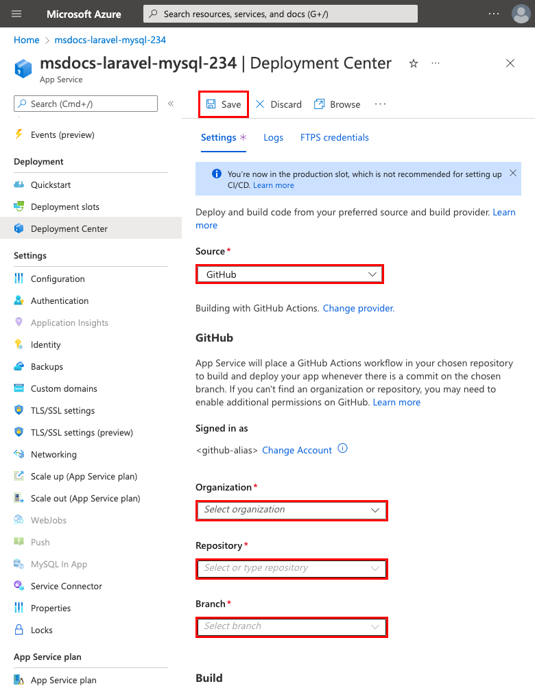 - Erstellen einer sicheren standardmäßigen PHP- und MySQL-App in Azure