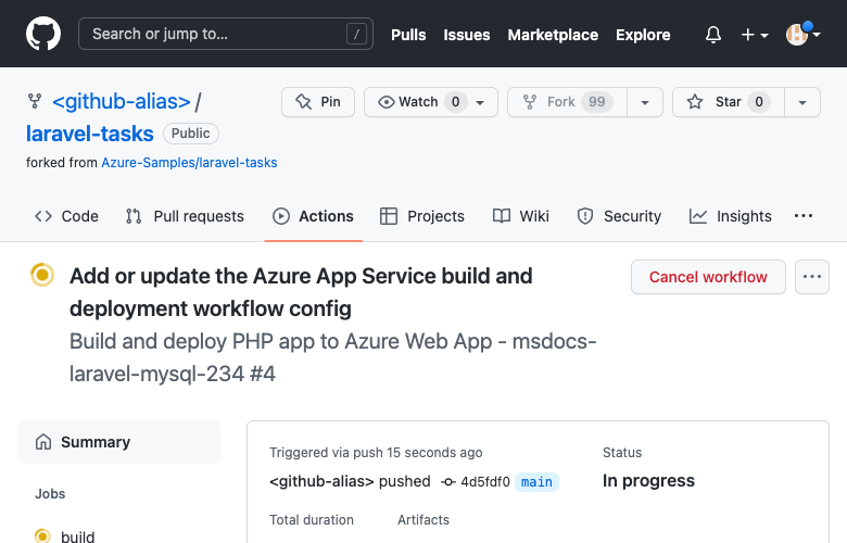 Tipp Die GitHub-Aktion wird durch die Datei im GitHub-Repository in .github/workflow definiert. Sie können es schneller machen, indem Sie die Datei anpassen. |