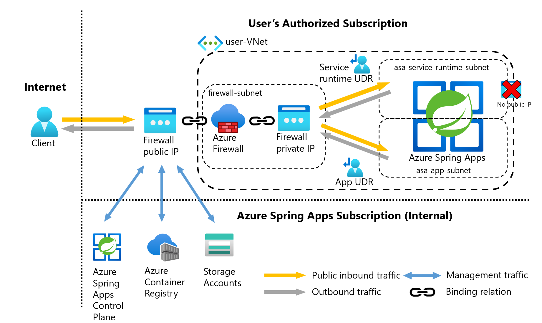 - Azure Spring Apps generiert keine öffentlichen IP-Ressourcen automatisch.