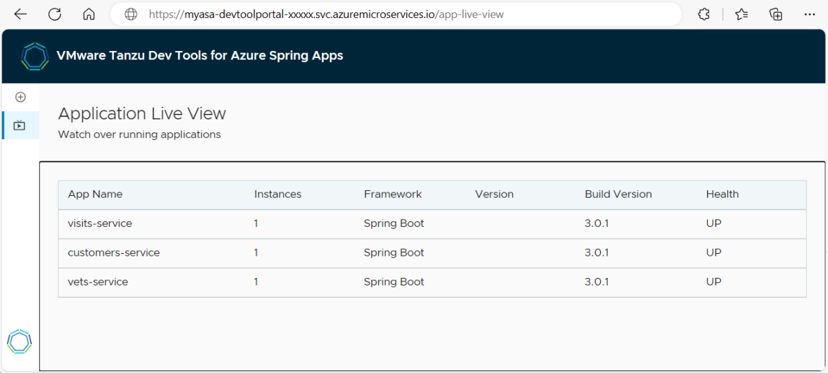 Öffnen Sie die Anwendungsliveansicht-URL, um Anwendungslaufzeiten zu überwachen, wie im folgenden Screenshot gezeigt:
