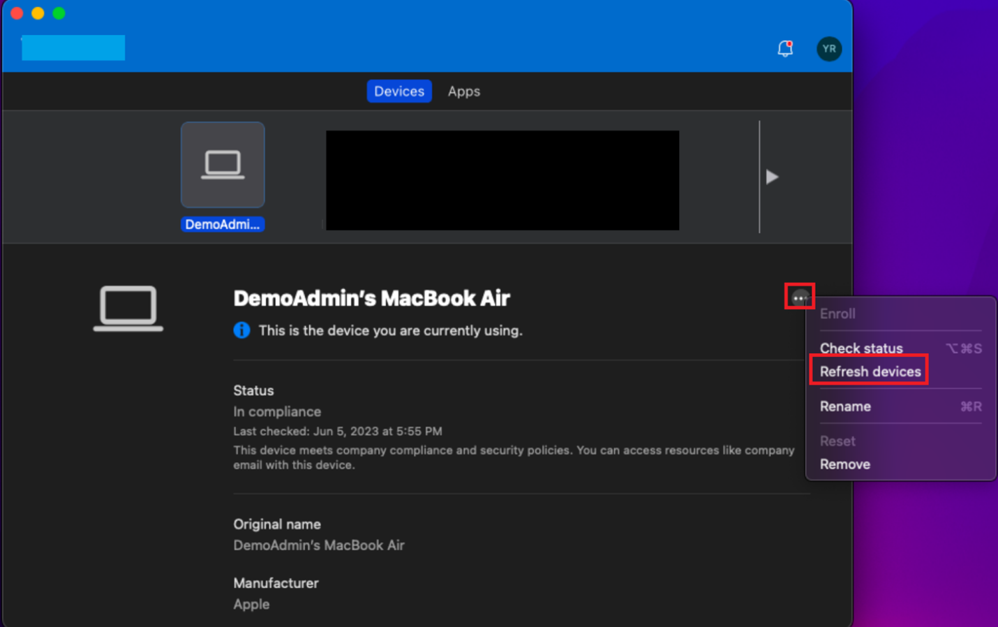 Wählen Sie Geräte aktualisieren aus. Der Bildschirm wird wie im folgenden Screenshot dargestellt angezeigt: