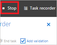 While you're recording, you can select the Close button (X) in the upper-right corner to hide the Task recorder pane without stopping the recording. You can reopen the pane by selecting the Task recorder button that appears at the top of the page. This button appears only while recording is in progress.