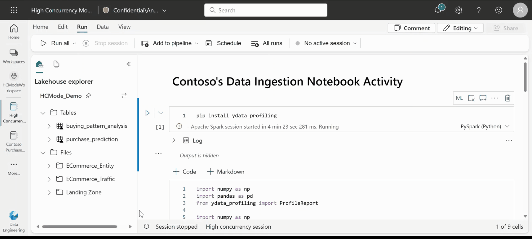 In diesem Dokument haben Sie die Grundlagen der Freigabe von Sitzungen durch den Modus für hohe Parallelität in Notebooks kennengelernt. Fahren Sie mit den nächsten Artikeln fort, um zu erfahren, wie Sie mit Lakehouse und Notebooks Ihre eigenen Datentechnikumgebungen erstellen und erste Schritte unternehmen können: