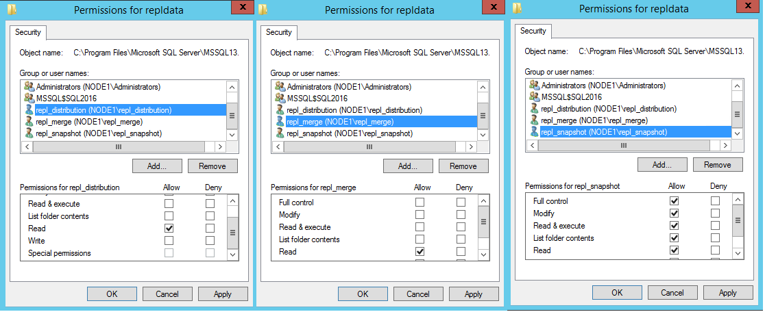 Wiederholen Sie den vorherigen Schritt, um Berechtigungen für den Verteilungs-Agent <Name_des_Herausgebercomputers>\repl_distribution und für den Merge-Agent <Name_des_Herausgebercomputers>\repl_merge hinzuzufügen.
