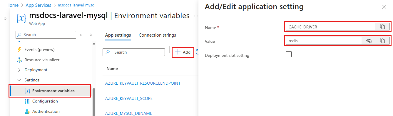 This tutorial shows how to create a secure PHP app in Azure App Service connects to a MySQL database using Azure Database for MySQL Flexible Server. You also deploy an Azure Cache for Redis to enable the caching code in your application. Azure App Service is a highly scalable, self-patching, web-hosting service that can easily deploy apps on Windows or Linux. When you're finished, you have a Laravel app running on Azure App Service on Linux.