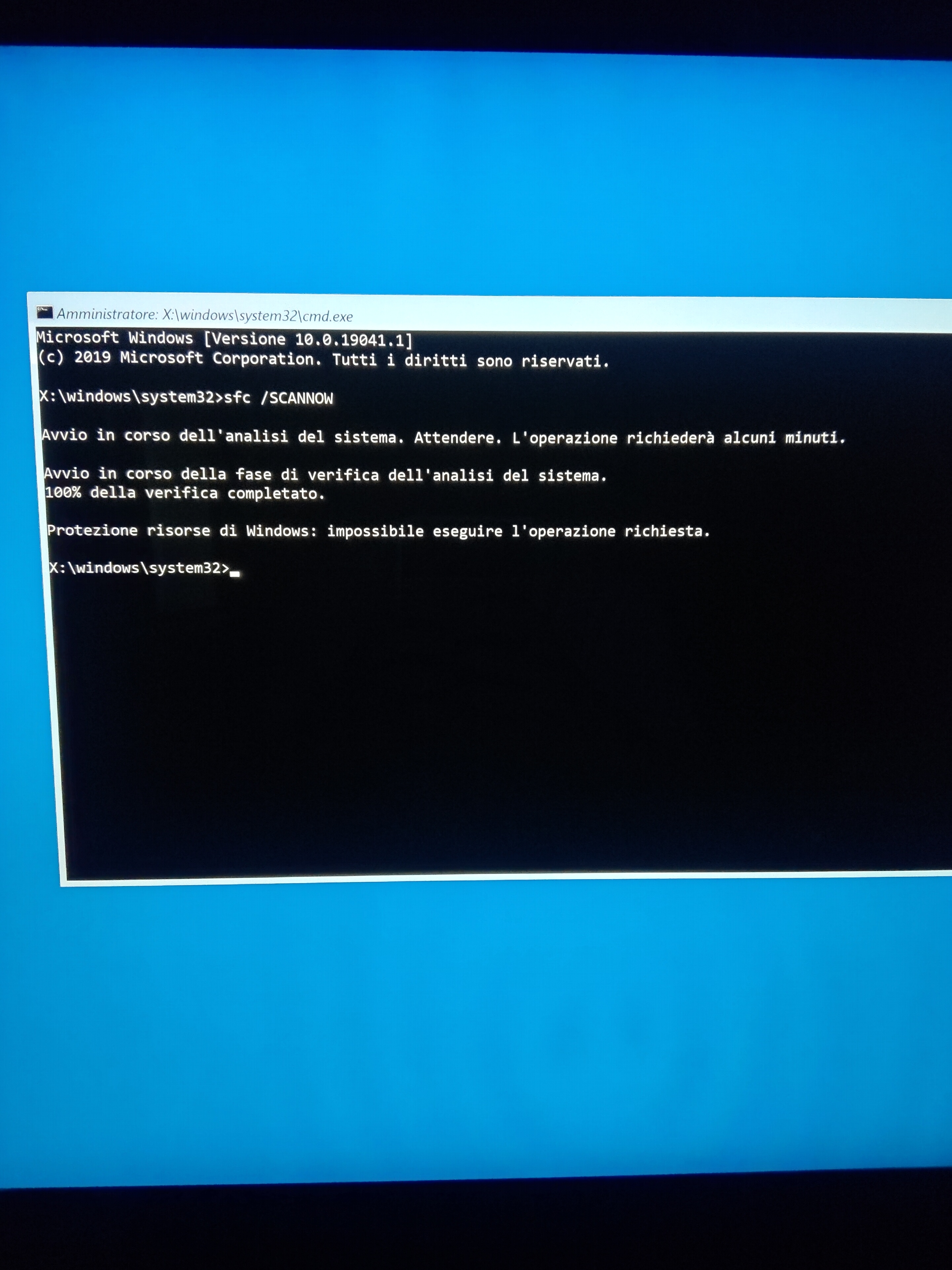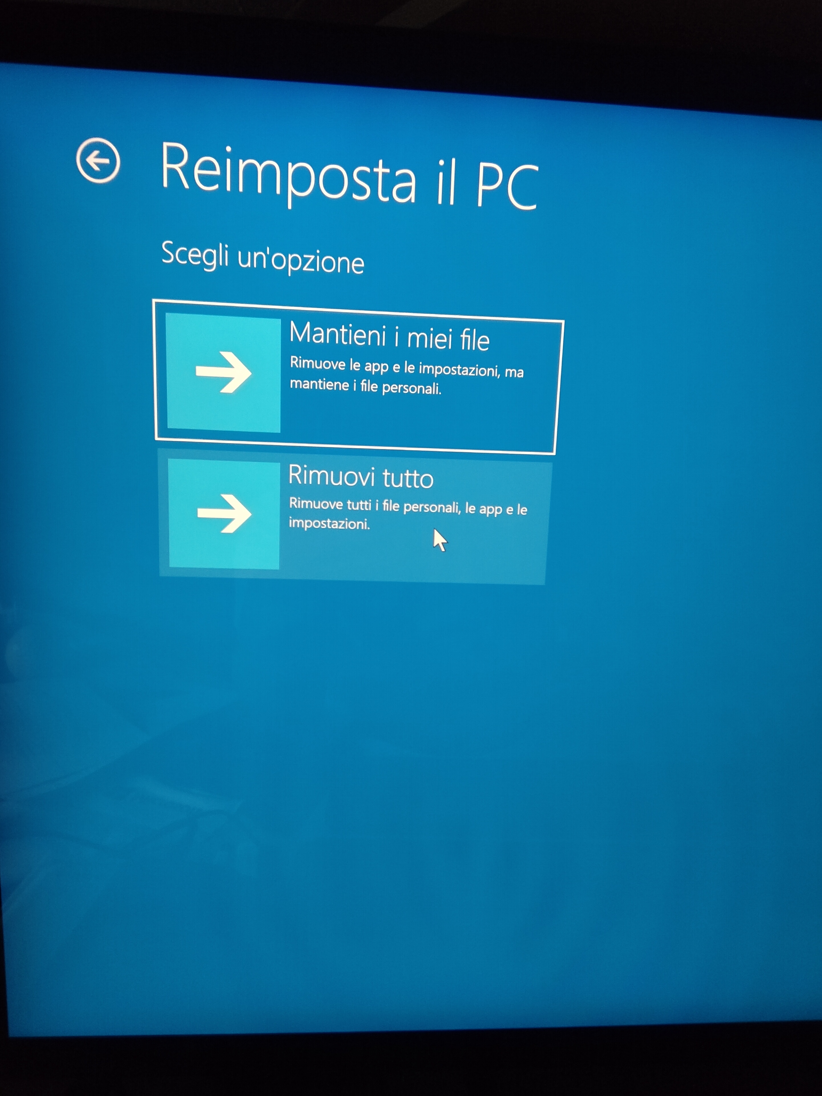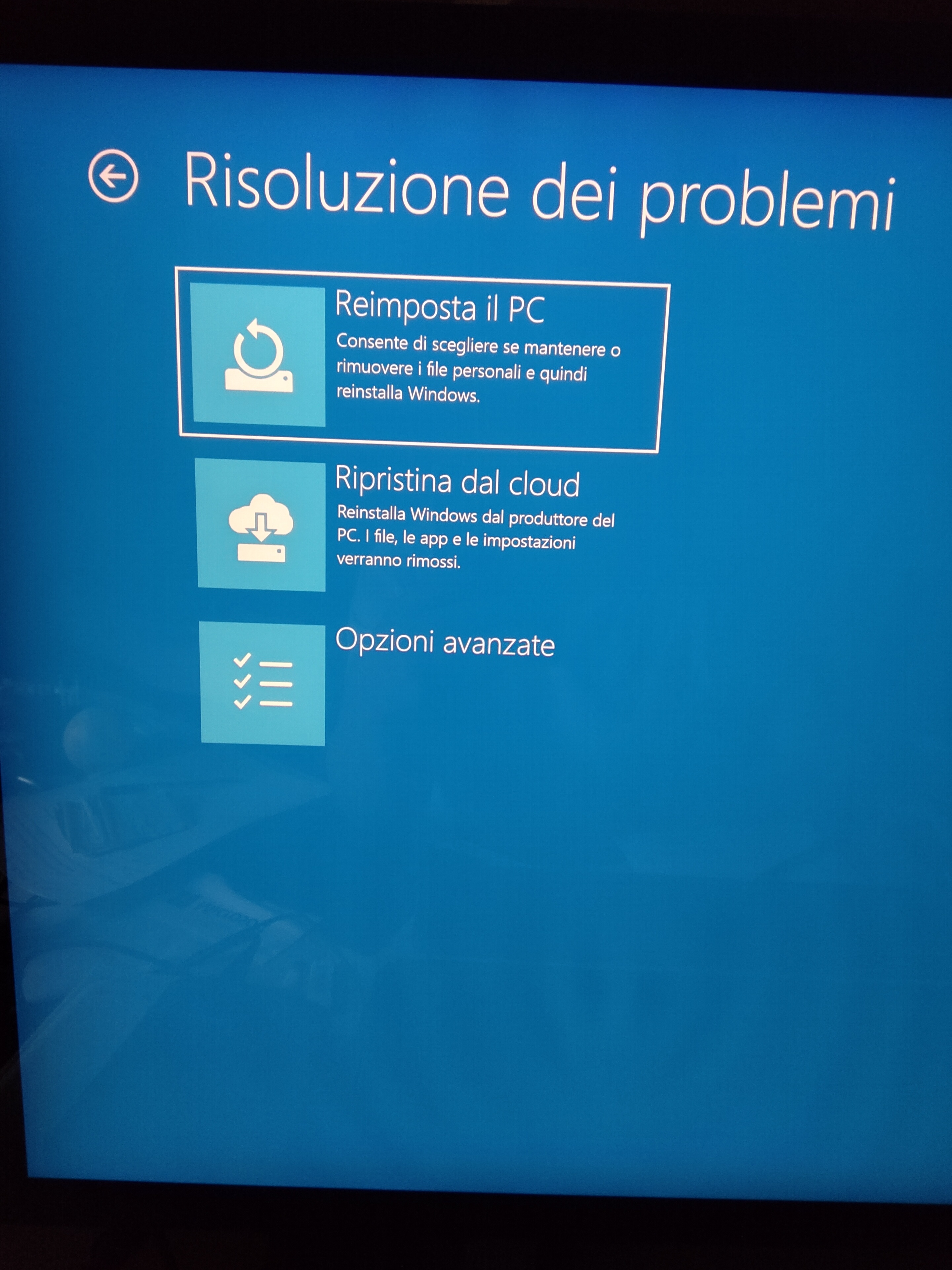 Ho provato a fare sfc/Scannow dalle impostazioni avanzate e il risultato è quello che vedete. Non è andato neanche facendo la reimpostazione ma poi è uscita una schermata che non ho fatto in tempo a ripristinare e sembra che ora stia partendo una sorta di reinstallazione e reimpostazione (ho cliccato su rimuovi tutto) (che viene chiamata diversamente)