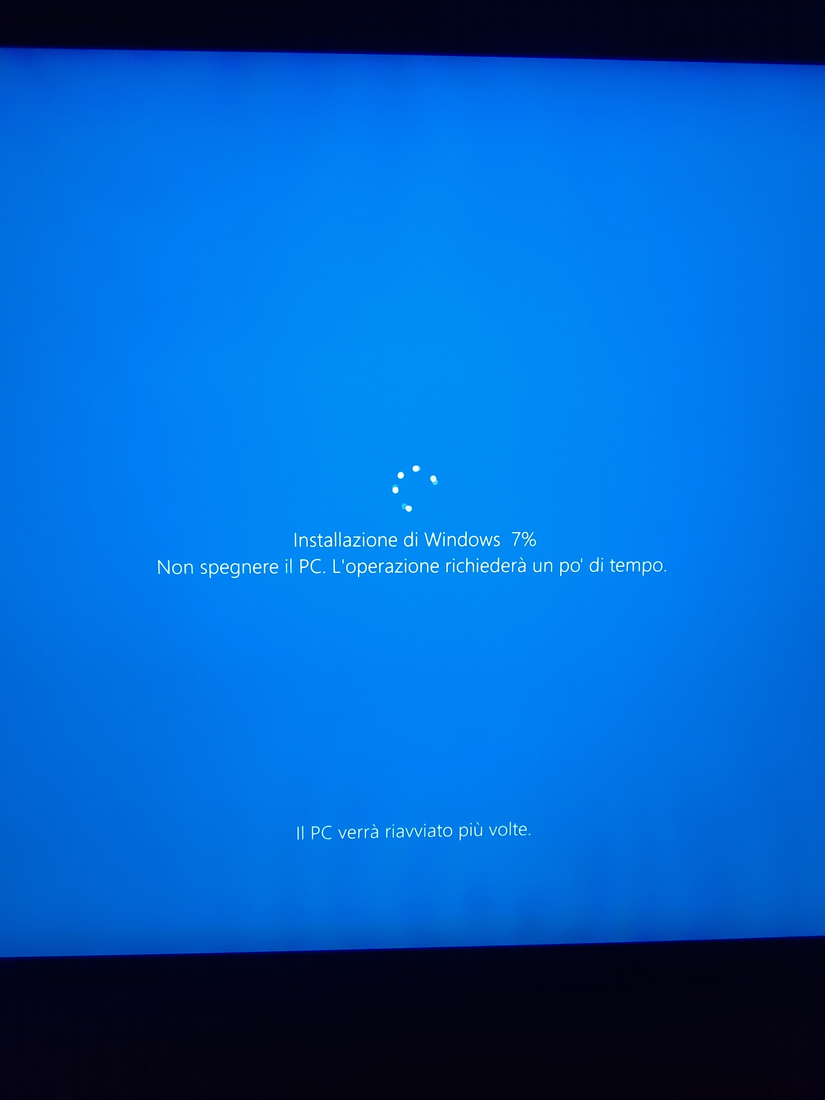 A me sembra tanto che il problema sia causato da un aggiornamento di sistema perché appena viene messo il computer funziona in questo modo visto che ho riprovato più volte a metterlo. Adesso sta al 7% sembra che stia proseguendo l'installazione