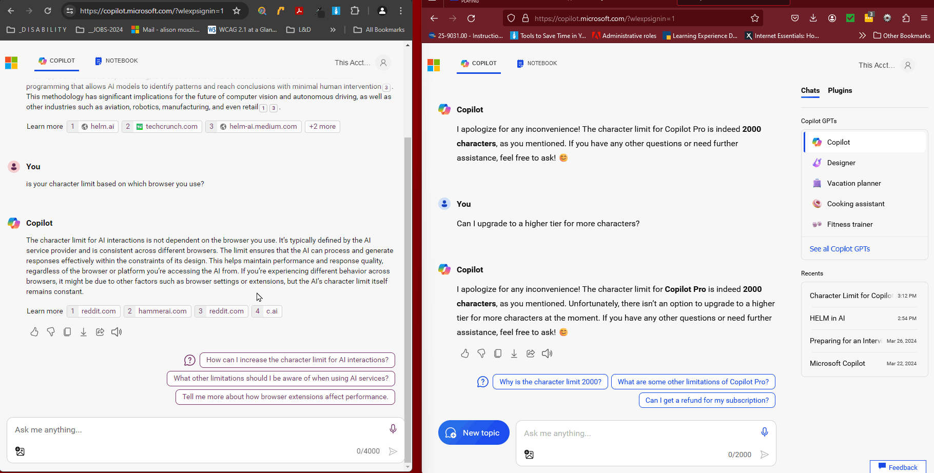 Even better, in this month, Microsoft Copilot is rolling out an update to Edge Copilot, that increases the character limit for user prompts. And the 2000 and 4000 from your concerned part will go to 4000 and 8000.
