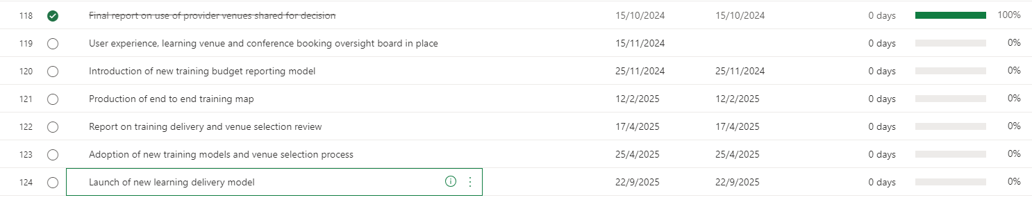 So for example - if I want to record a task as having started on 15/11/2024 (UK dating style) it allows me to enter the start date. But if I want to record the proposed finish date as 16/11/2024, or any date prior to today's date, it won't show that date. This means that I'm not able to clearly see activities that have missed their deadlines.