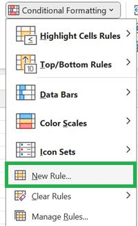 - Go to Home > Conditional Formatting > New Rule > Use a formula to determine which cells to format.