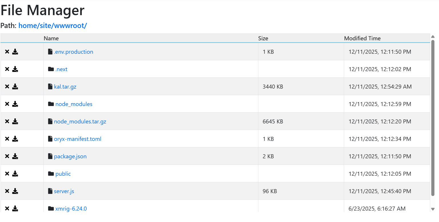 At minimum I suggest you stop your app (so that the cryptominer is no longer running). Update your clean source files so that known vulnerabilities are patched, test locally, deploy updated app, change any secret(s)/api keys/etc. that your app has access to. Make sure no malicious files remain.