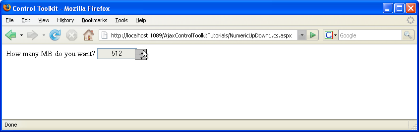 Finally, create a new ASP.NET page. As usual, you need a ScriptManager control, a TextBox control and a NumericUpDownExtender control. For the latter, you have to provide the web service information: