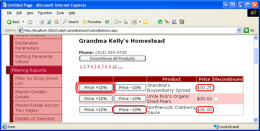 Figure 20: The GridView Includes Price +10% and Price -10% Buttons (Click to view full-size image)