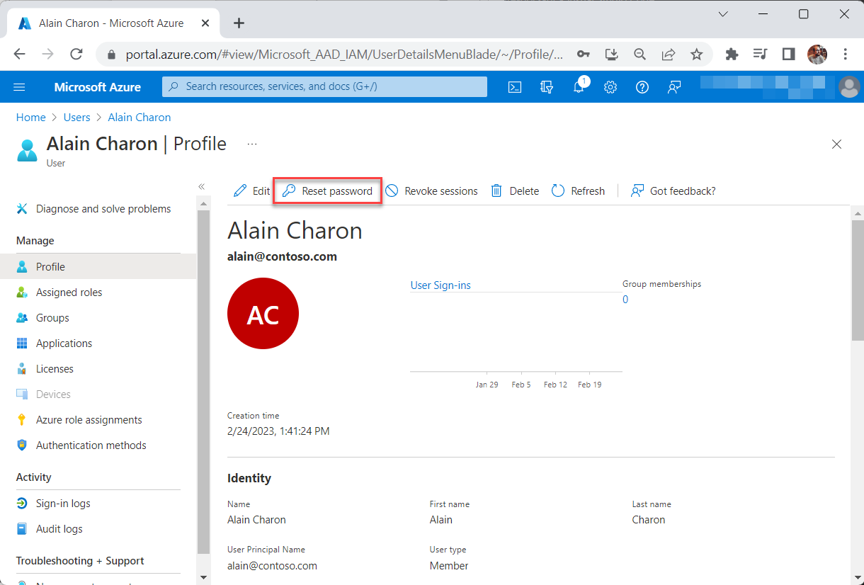 - In your Azure AD B2C directory, select Users, and then select the user you want to reset the password.