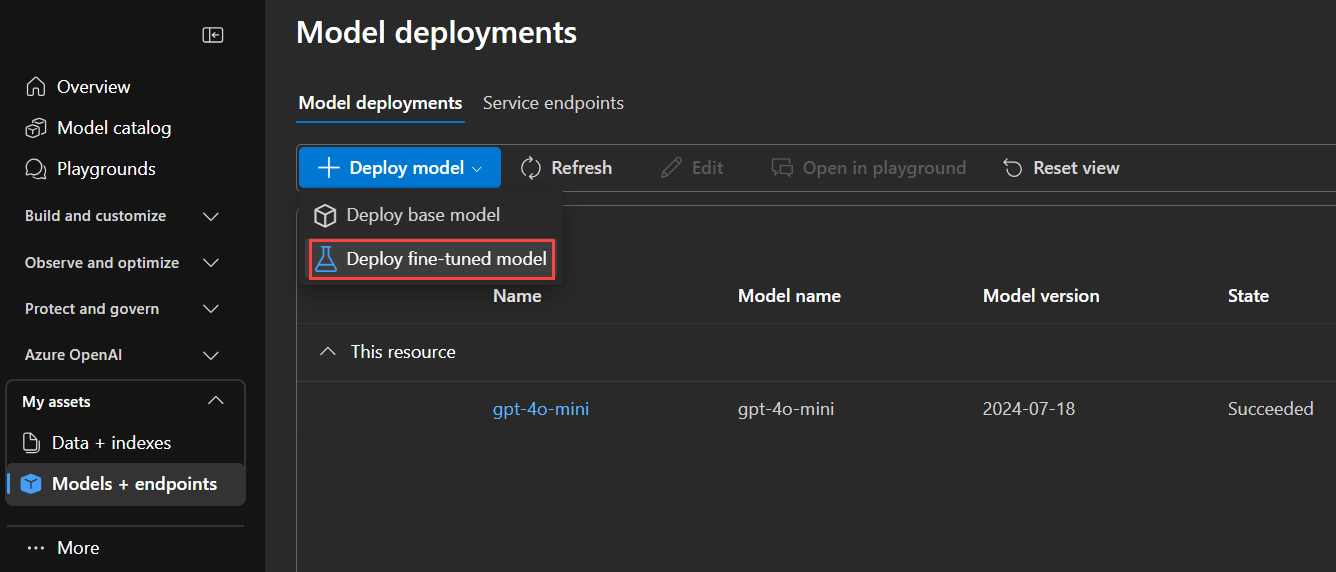 After the fine-tuning job succeeds, you can deploy the custom model.