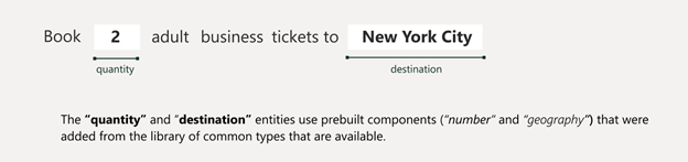 Typically, you add a prebuilt component for Quantity.Number that already extracts all numbers. If your entity was only defined with the prebuilt component, it also extracts other numbers as part of the Ticket Quantity entity, such as "Book two tickets tomorrow to Cairo at 3 PM."