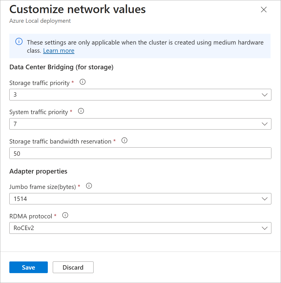 These settings are only applicable when you create an Azure Local instance using the medium hardware class.