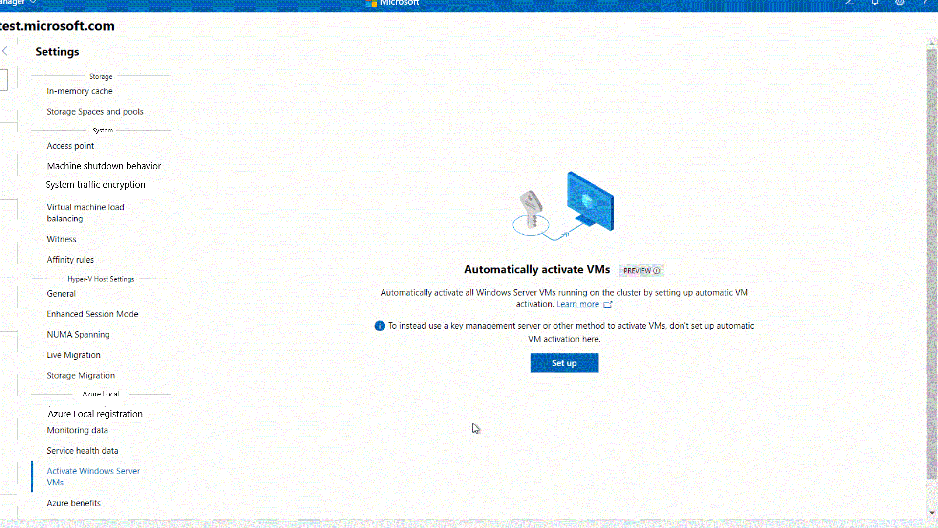 - Azure Local supports Automatic VM Activation (AVMA), a method that binds VM activation to the Azure Local machine and activates the Windows Server VM when it starts up.