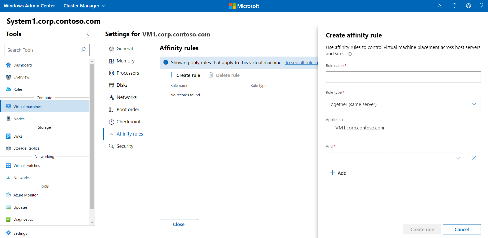 10. Select Affinity rules to create an affinity rule for a VM. For more information on creating affinity rules, see Create machine and site affinity rules for VMs.