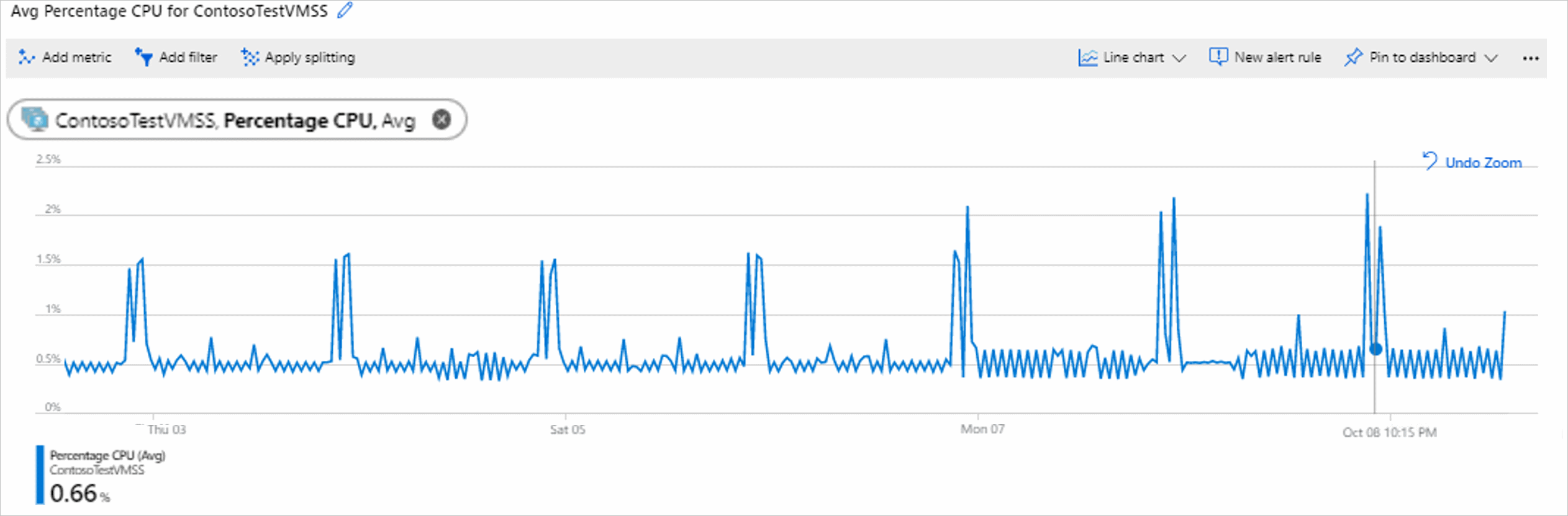 The following chart shows a Percentage CPU metric for a virtual machine scale set.