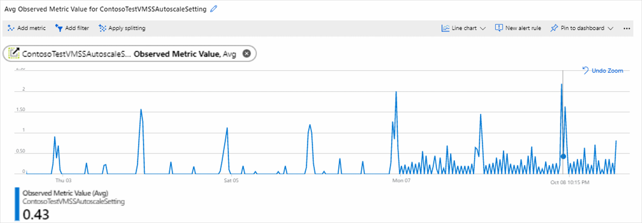 - Observed Metric Value: The value of the metric you chose to take the scale action on, as seen or computed by the autoscale engine. Because a single autoscale setting can have multiple rules and therefore multiple metric sources, you can filter by using "metric source" as a dimension.