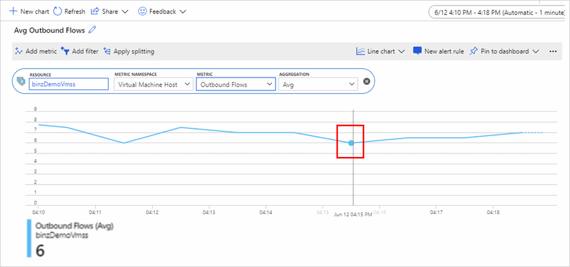The Avg Outbound Flows chart shows the value of the Outbound Flows metric. The actual value is 6.