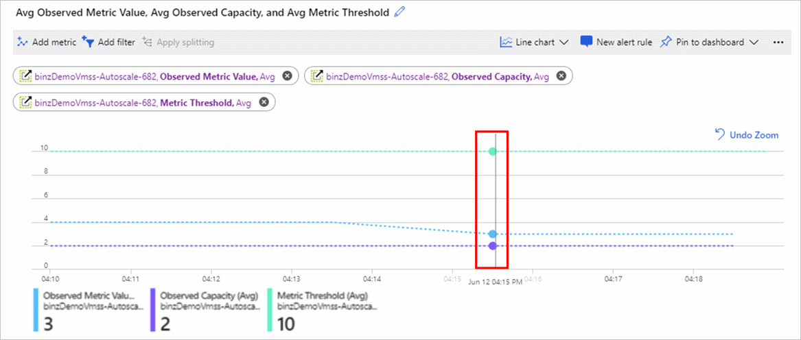 - The Observed Capacity metric at the bottom shows the instance count seen by an autoscale engine.