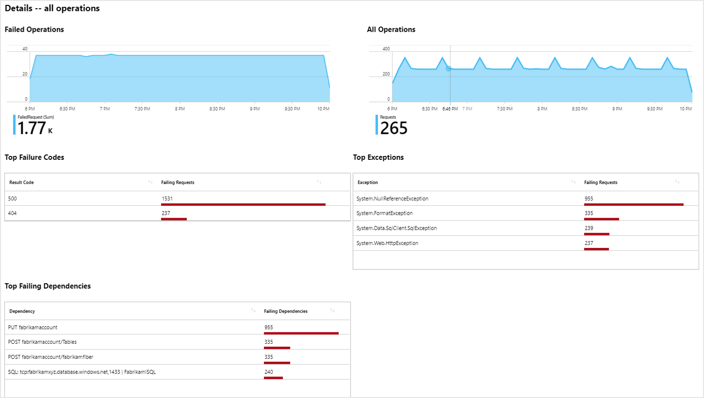 The Performance and Failures tabs simplify this process by bringing together performance and failure diagnostic views for many common resource types.
