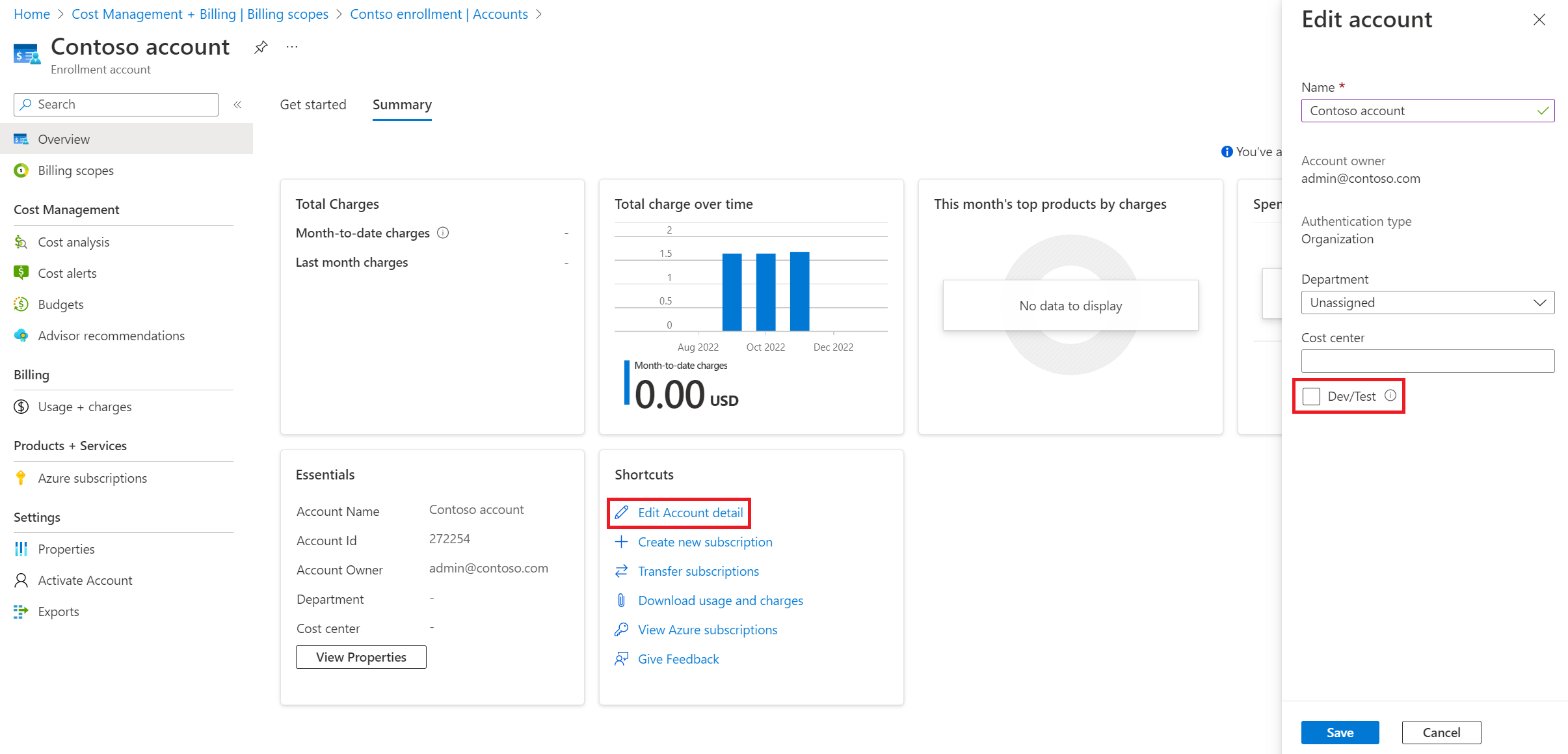 EA Billing administration on the Azure portal