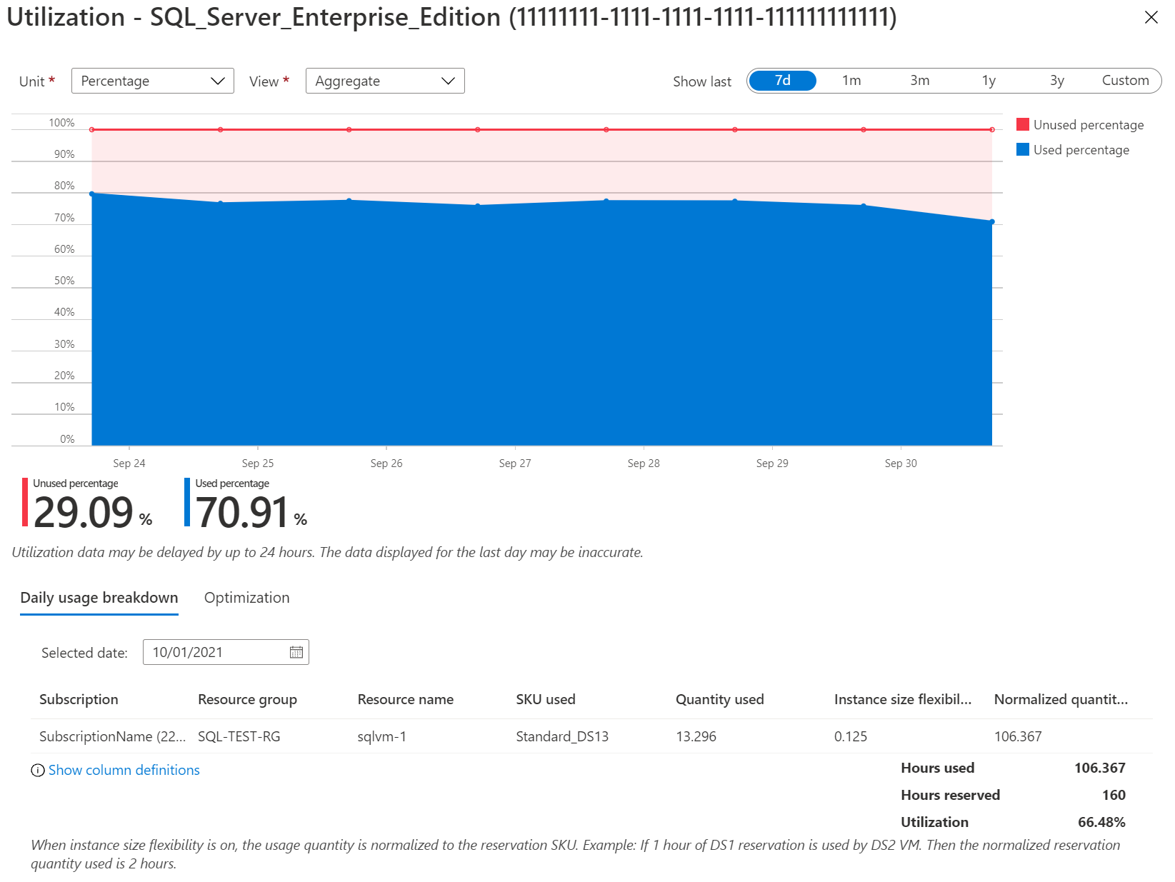 Under Last Day Utilization or 7-day Utilization, select a percentage, which might be blank or zero, to view the assignment usage history in detail.