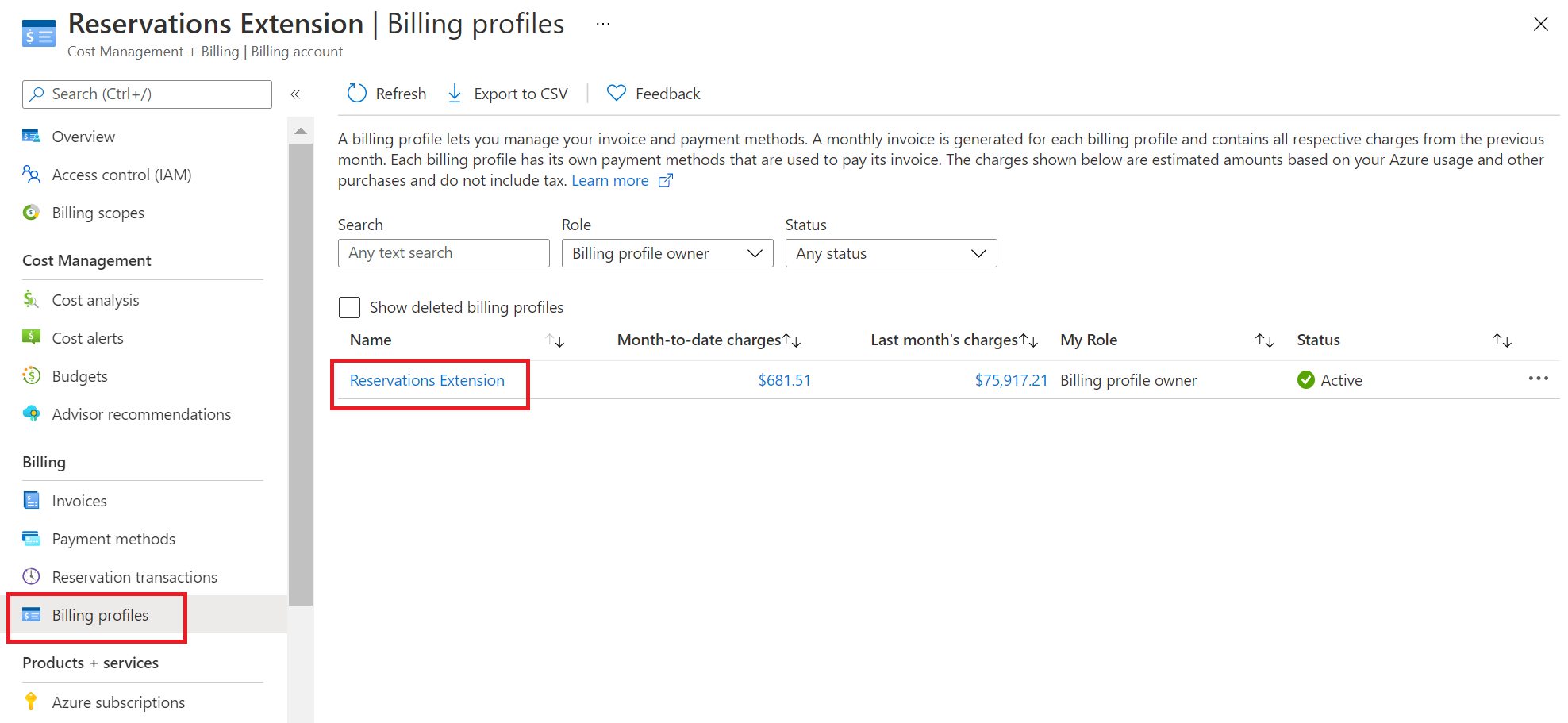 | Microsoft Customer Agreement | Billing account owner Billing account contributor Billing profile owner Billing profile contributor If you don't have one of the preceding roles, your organization must assign one to you. For more information about how to become a member of the roles, see Manage billing roles. |