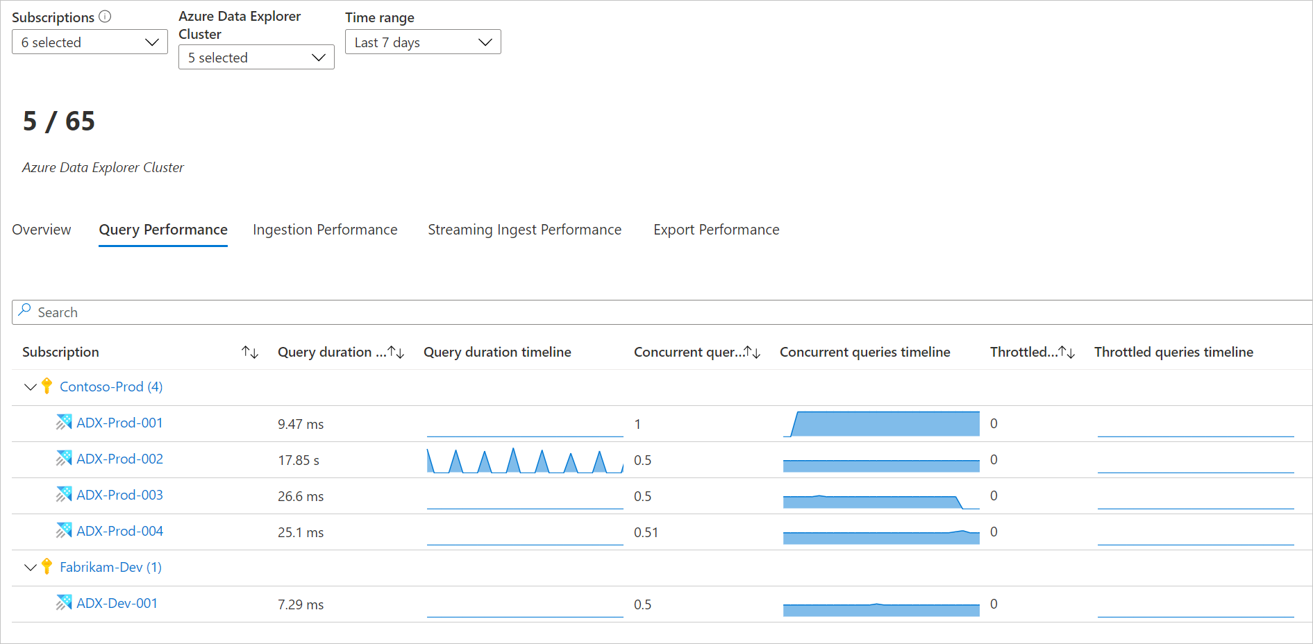 • Azure Data Explorer clusters: By default, up to five clusters are pre-selected. If you select all or multiple clusters in the scope selector, up to 200 clusters will be returned.