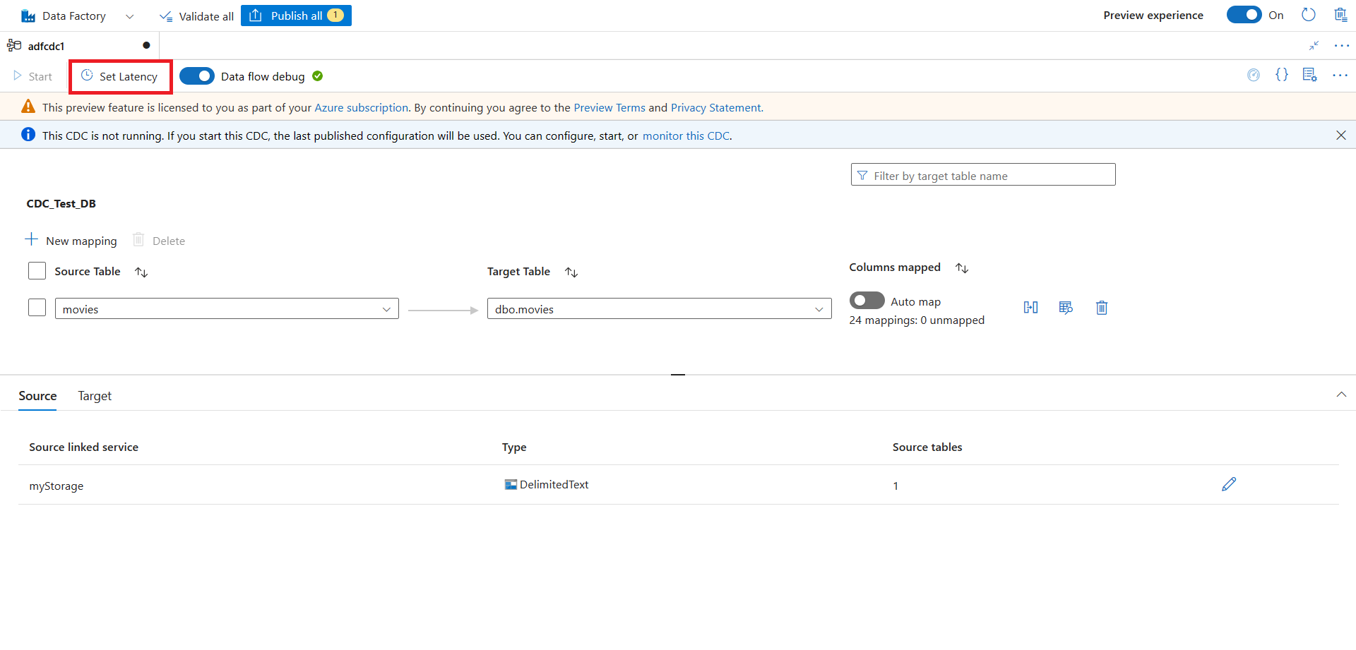 After your mappings are complete, set your CDC latency by using the Set Latency button.