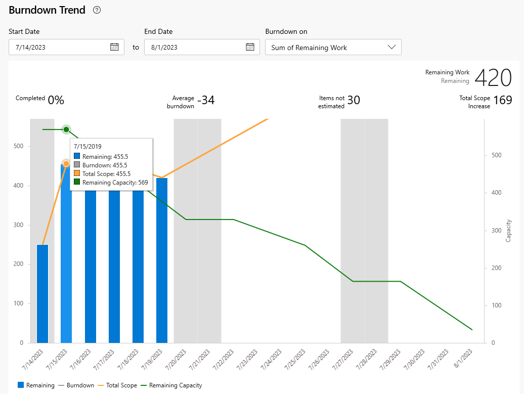 Screenshot that shows Burndown Trend based on Remaining Work.
