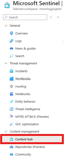 Navigate to your Microsoft Sentinel workspace, and then select Content hub under Content management.
