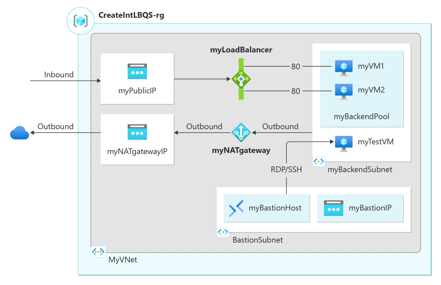 To provide outbound internet access for resources in the backend pool, create a NAT gateway.