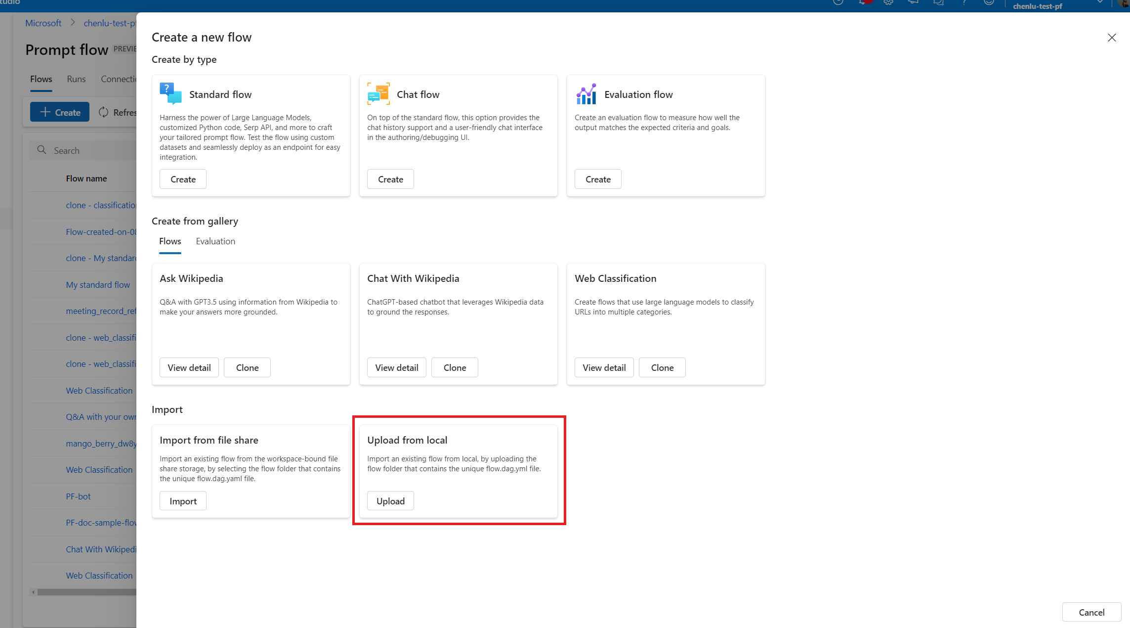 Smooth transition between local and cloud. You can easily export your flow folder to your local or upstream code repository for version control, local development, and sharing. You can also effortlessly import the flow folder back into Azure Machine Learning for further authoring, testing, and deployment using cloud resources.
