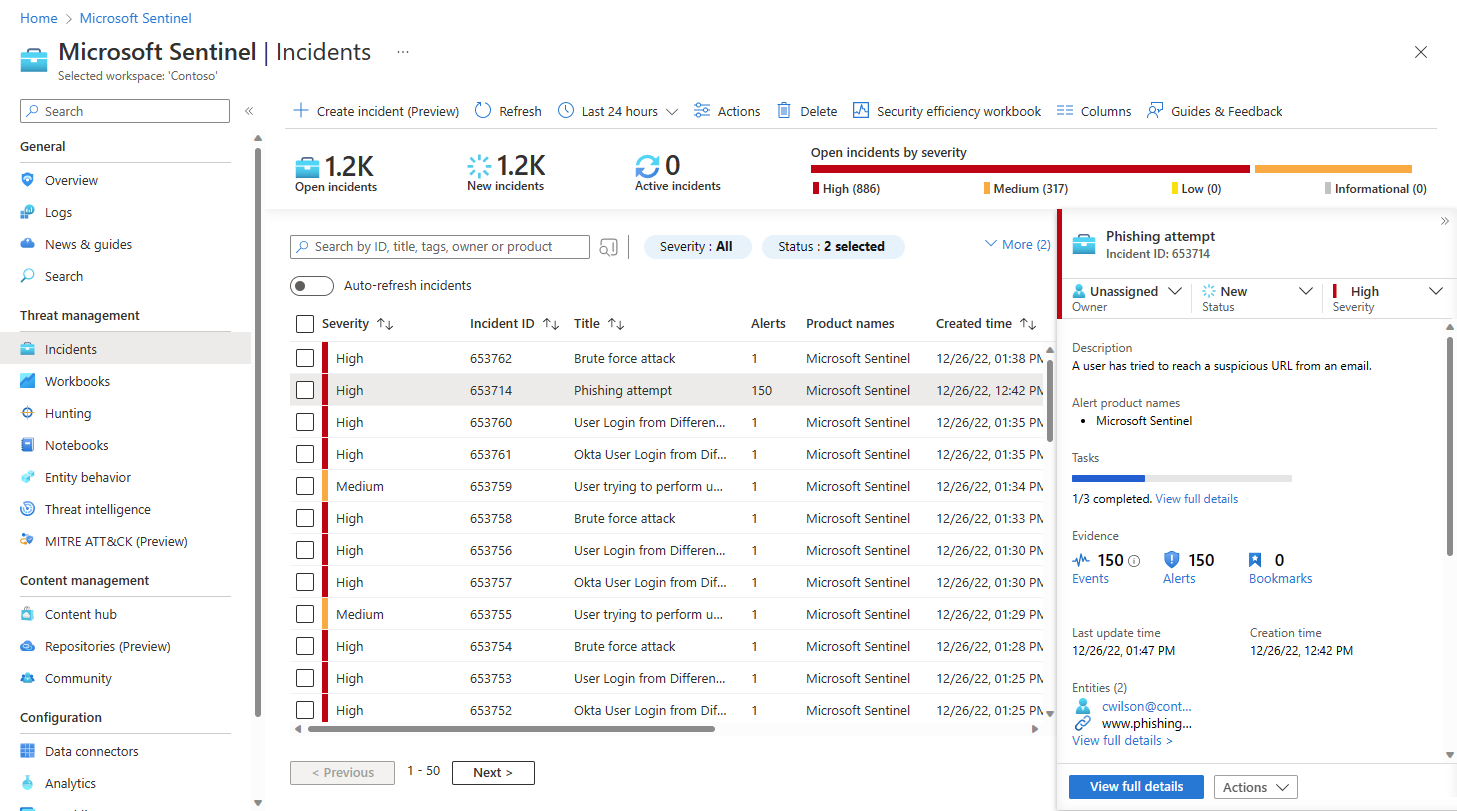 Select an incident to investigate. In the incident details panel, select View full details.